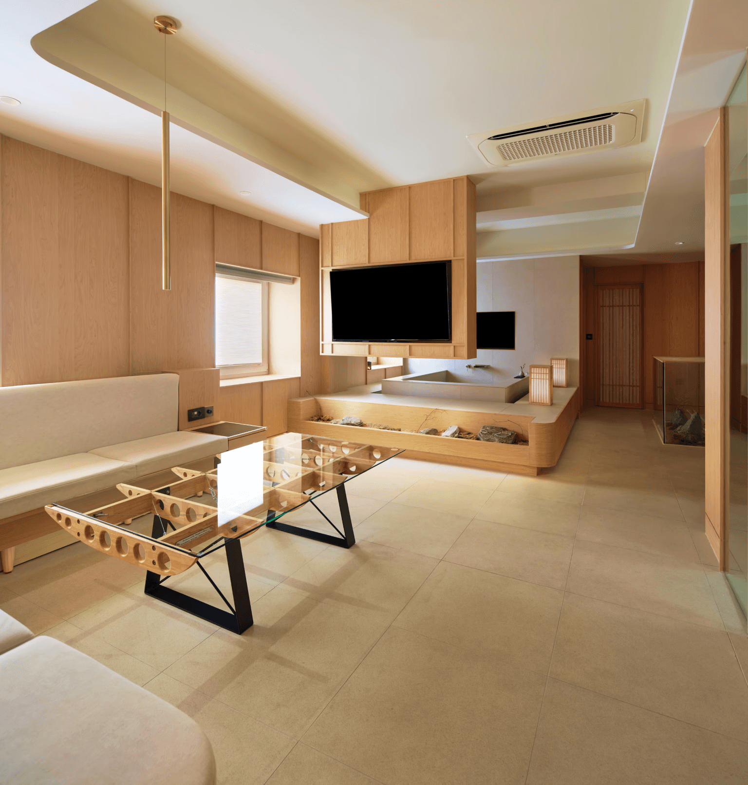 能在溫暖的燈光下享受舒適的泡湯時光。