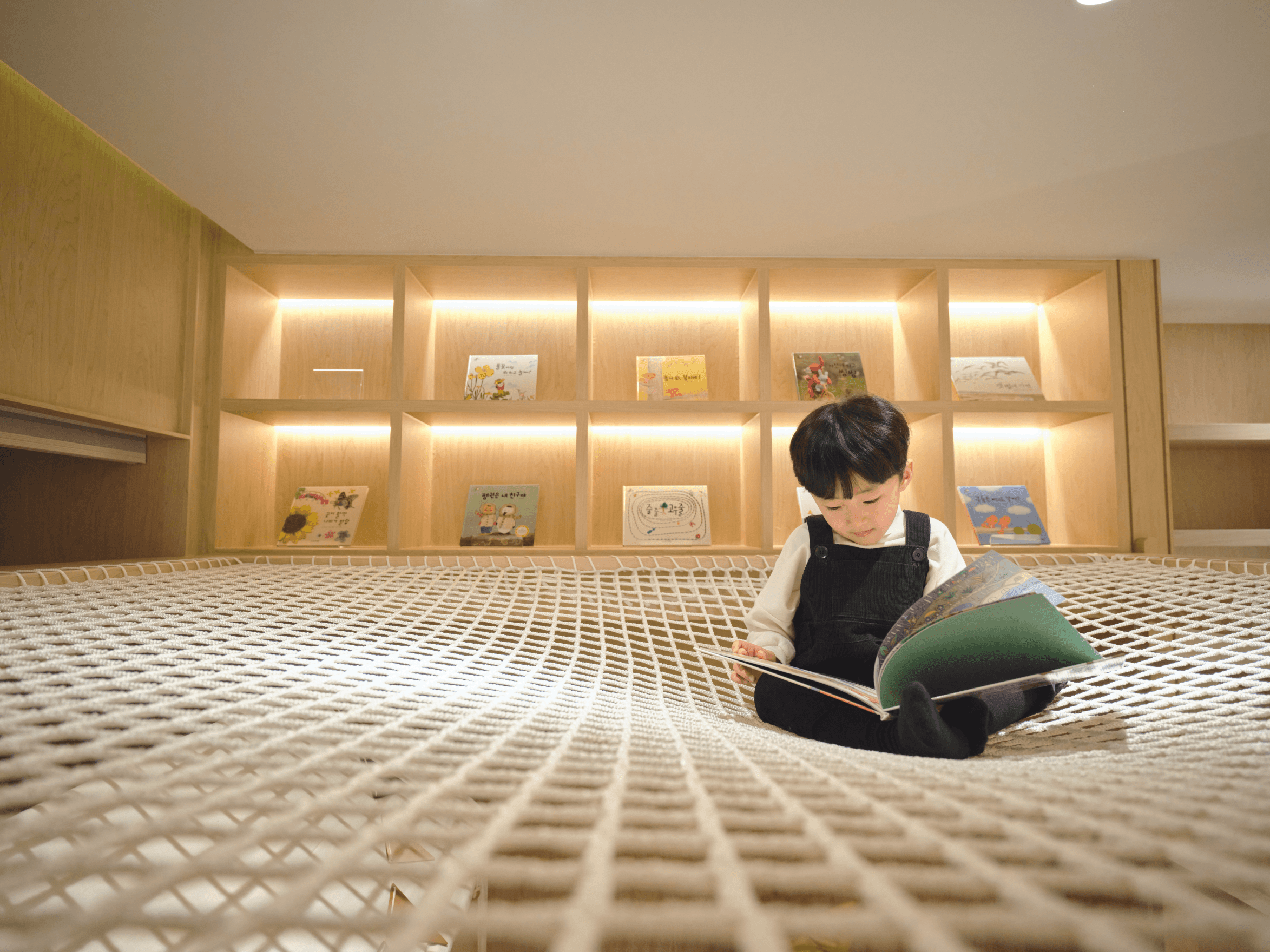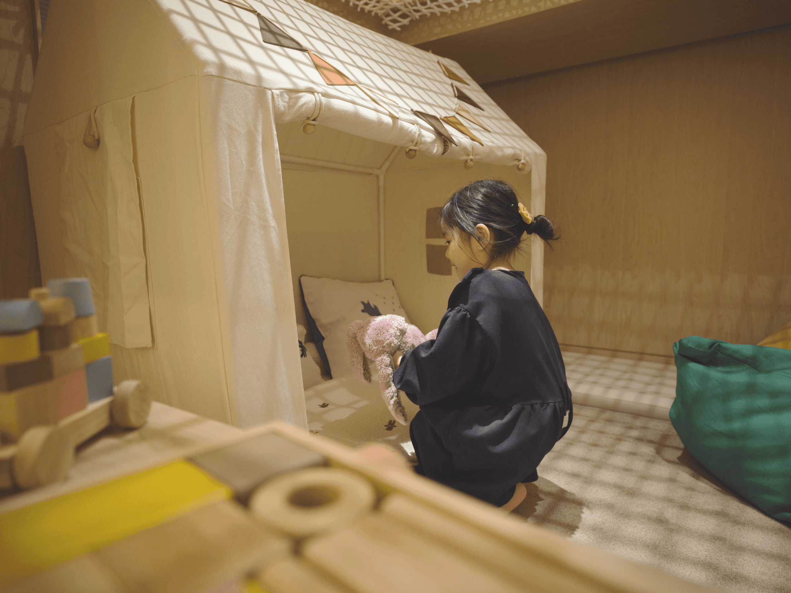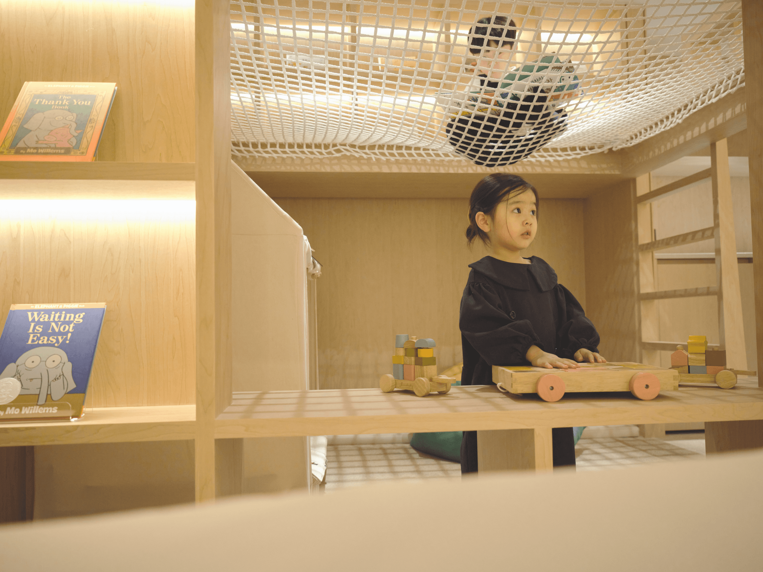 铺着柔软地垫的 宽敞游戏空间相互衔接,