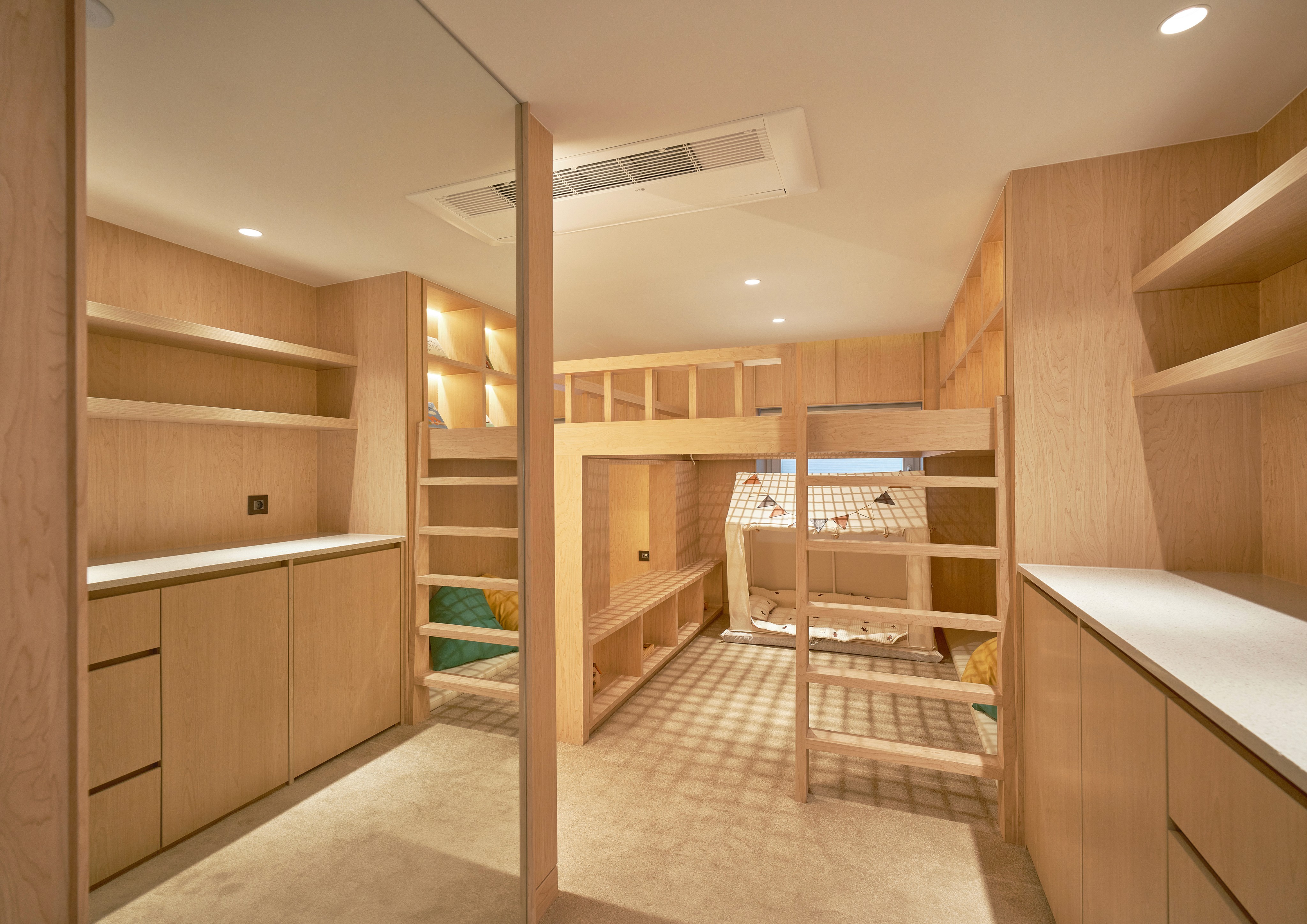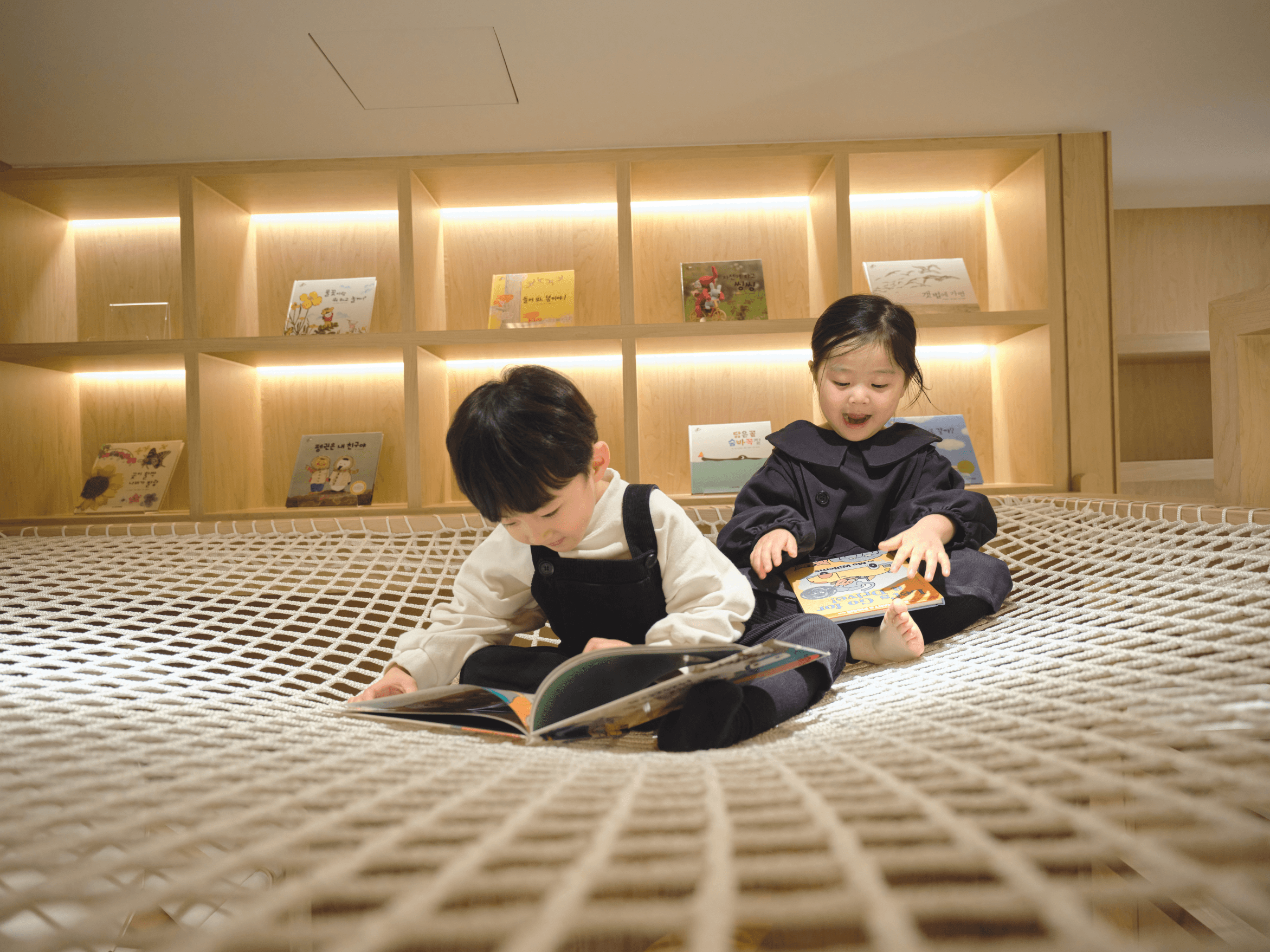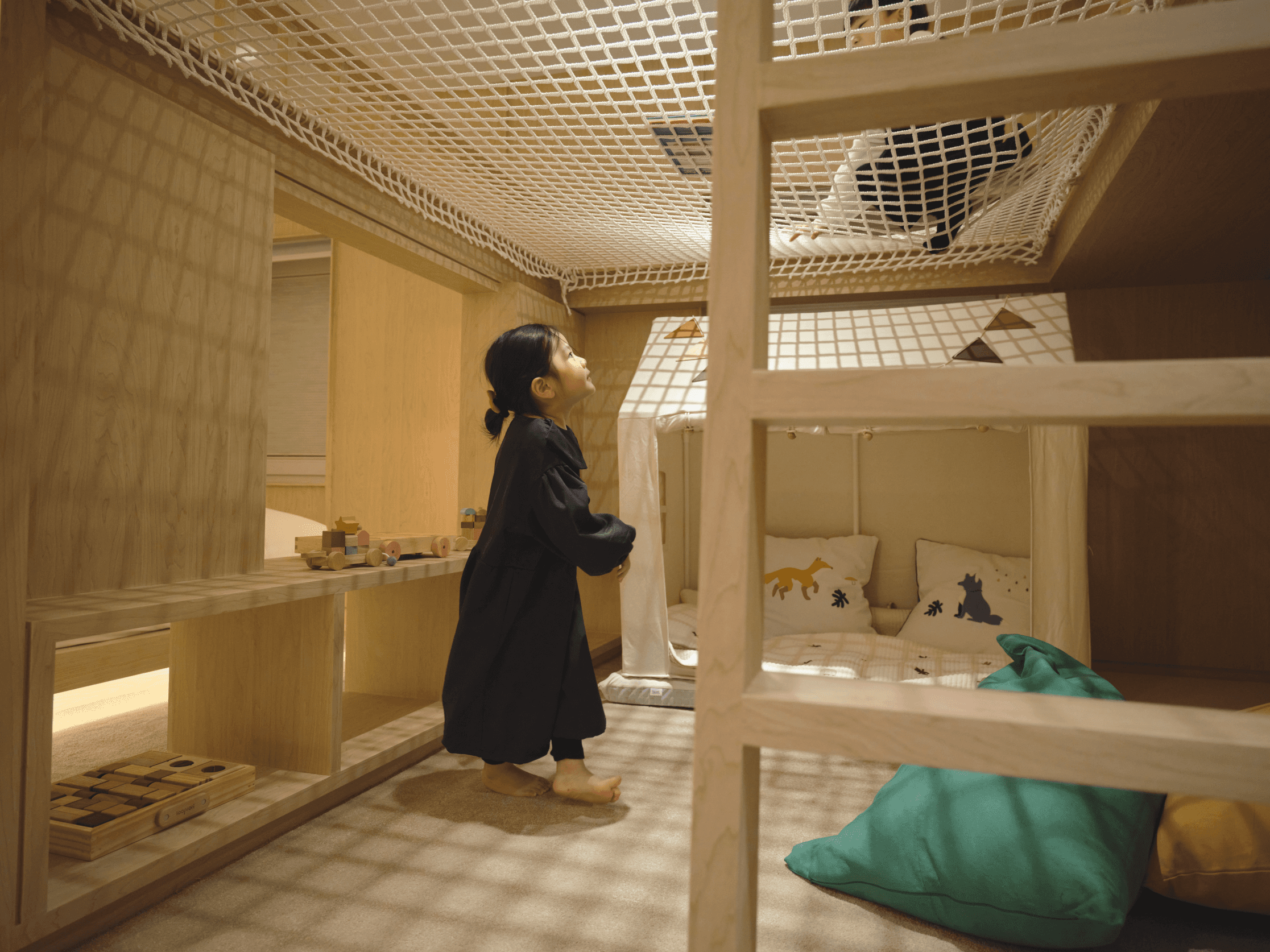 铺着柔软地垫的 宽敞游戏空间相互衔接,