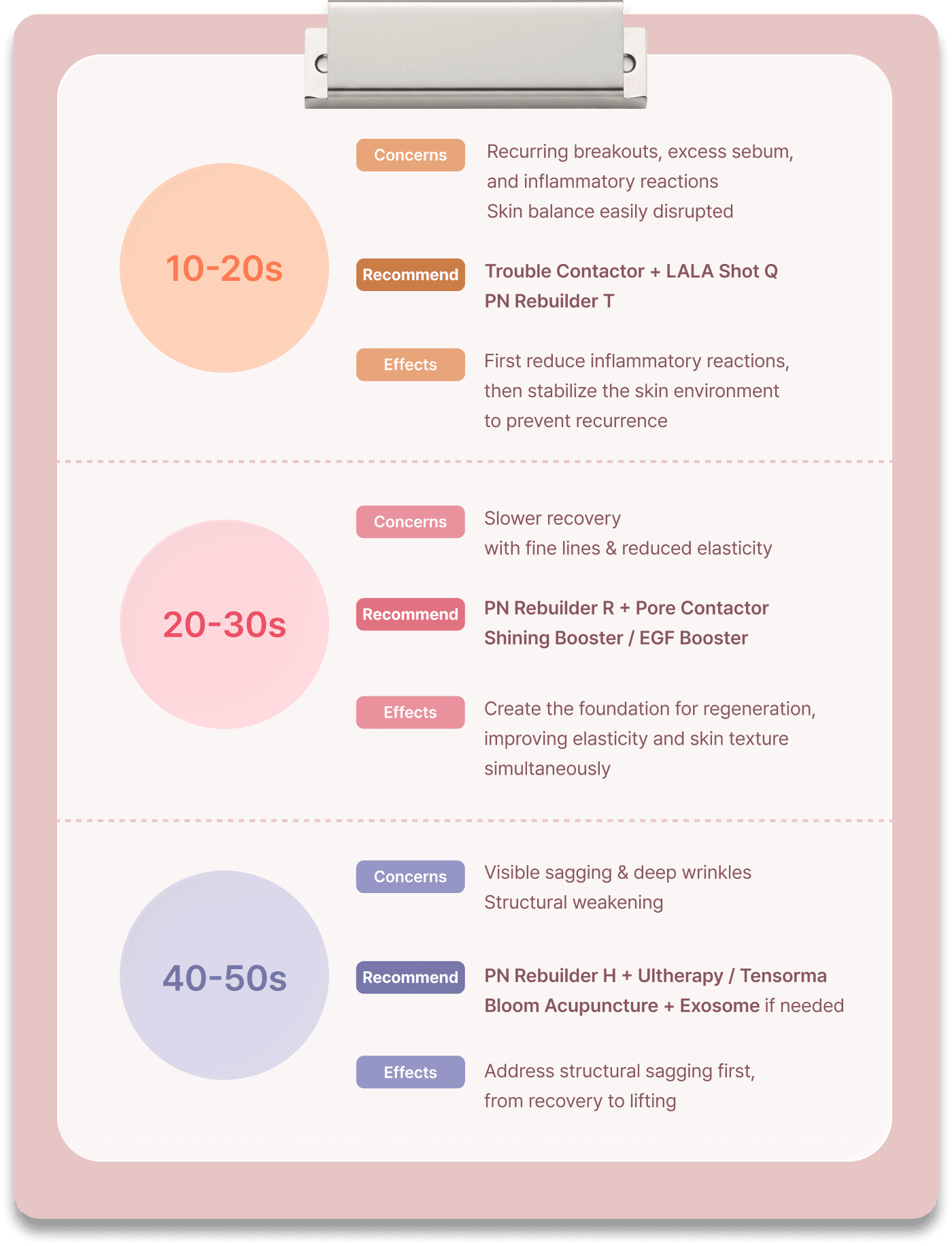 Based on your skin’s condition, it precisely targets the most essential recovery focus—regeneration, stabilization, firmness, and more.