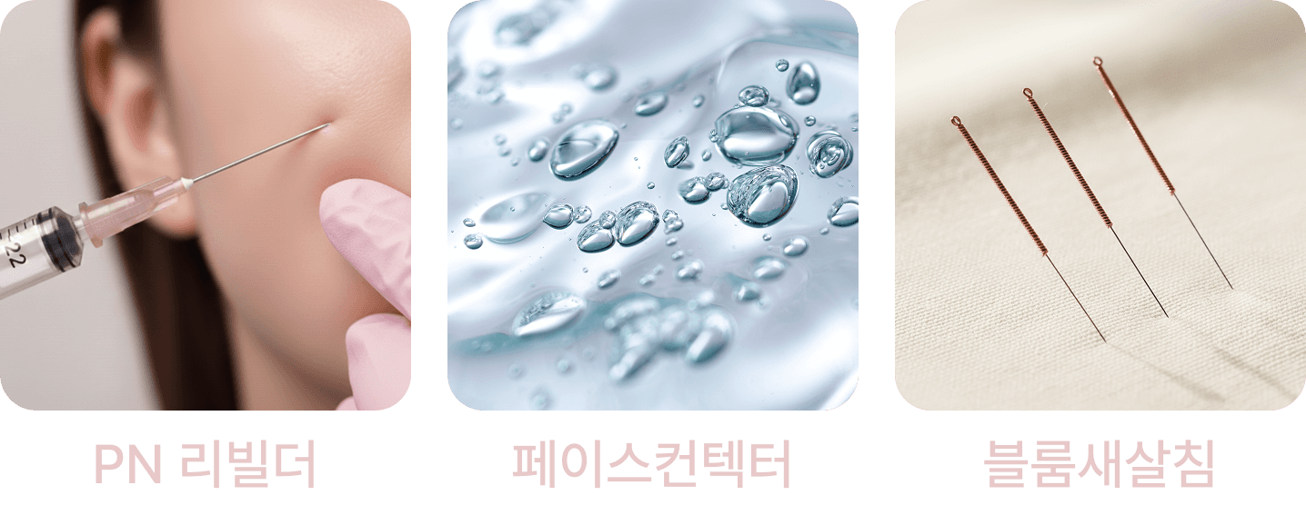 피부 상태에 따라 재생 · 안정화 · 탄력 등 가장 필요한 회복 지점부터 정확하게 설계합니다.