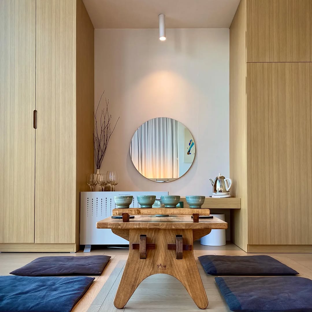 桌面上的小擺件也承載藝術家的氣息,石材與木材交織的質感,造就都市中的一片自然。